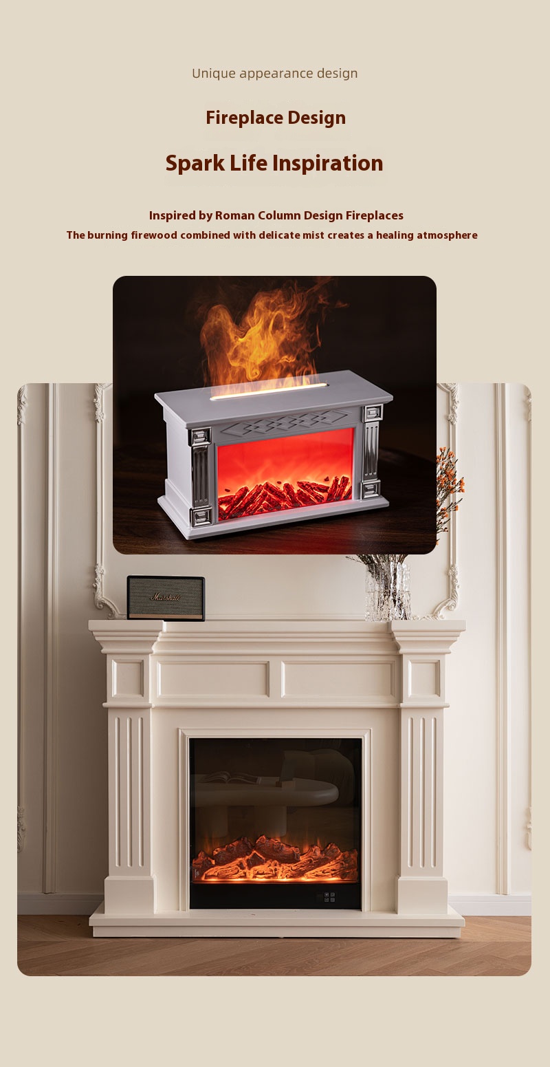【Ideal for Multiple Environments】Perfect for homes, offices, yoga studios, and more, this mini fireplace diffuser enhances your space while providing relaxing aromatherapy and air humidification benefits.