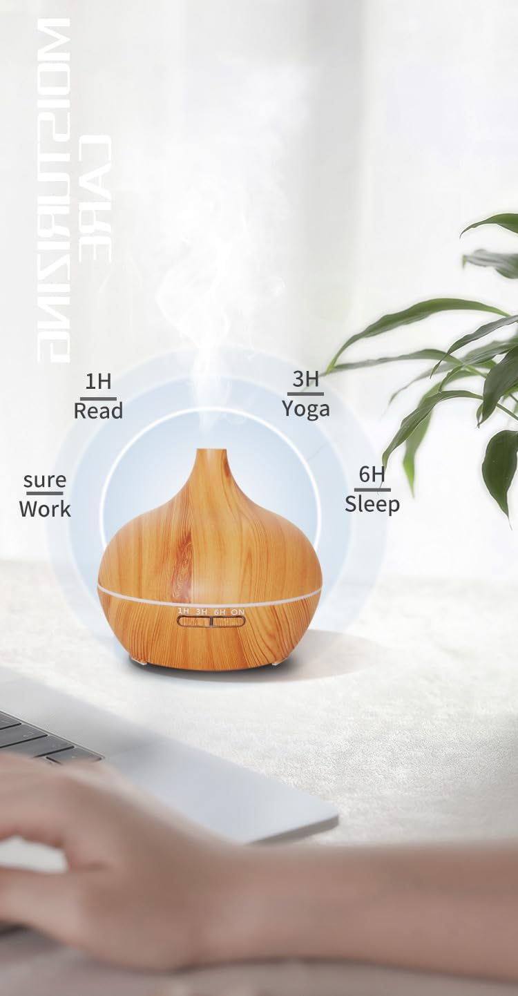 【Ultrasonic Essential Oil Humidifier】Using microporous atomization technology, it melts water molecules into a nanoscale cool mist to quickly release fragrance and fill everything, even a large room. Add a few drops of your favorite essential oils to create an aromatic spa at home. Helps the air better hydrate your skin.