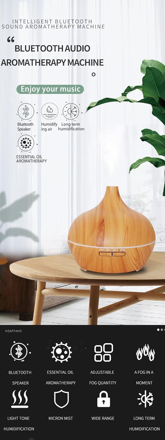 【Timer Schedule and Colorful Mood Light】Schedule the fragrance oil diffuser to automatically turn on/off (1/3/6 hours) at specific times based on your routine. It has 7 soothing colors, and the light can change from dim to bright. You can set the smart diffuser to a fixed color or let the colors cycle automatically, which is ideal for various atmospheres. Essential Oil Diffuser with Bluetooth Speaker: With advanced technology and Bluetooth compatibility, you can easily connect your smartphone or tablet to the aromatherapy diffuser, suitable for large rooms, the office, and yoga.
