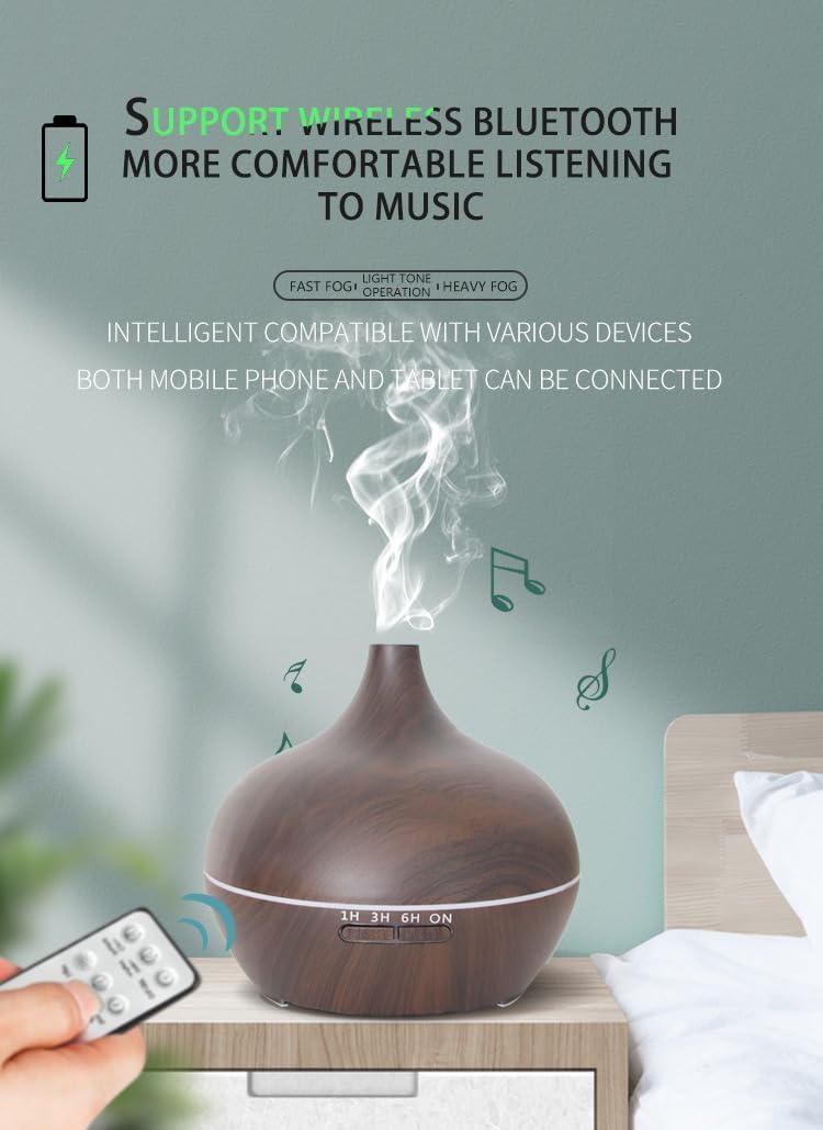 【Bluetooth Remote Control】Experience enhanced relaxation with our built-in Bluetooth speaker, allowing you to enjoy your favorite music or guided meditations while enjoying the therapeutic benefits of aromatherapy. Remote control functions include mist intensity, timer settings, scheduling, and RGB color.