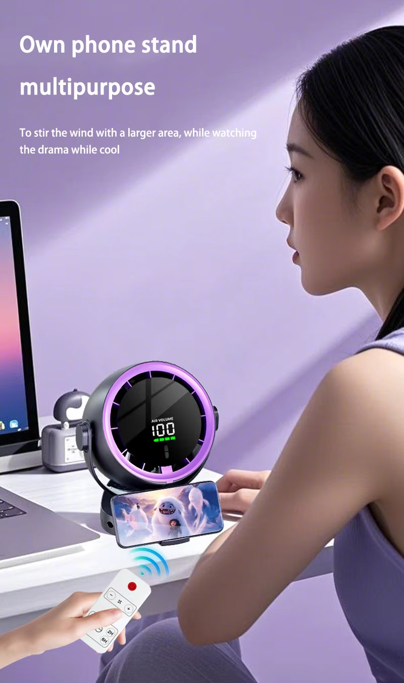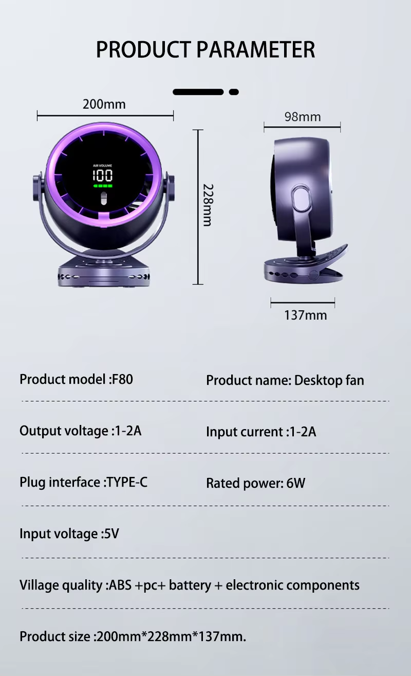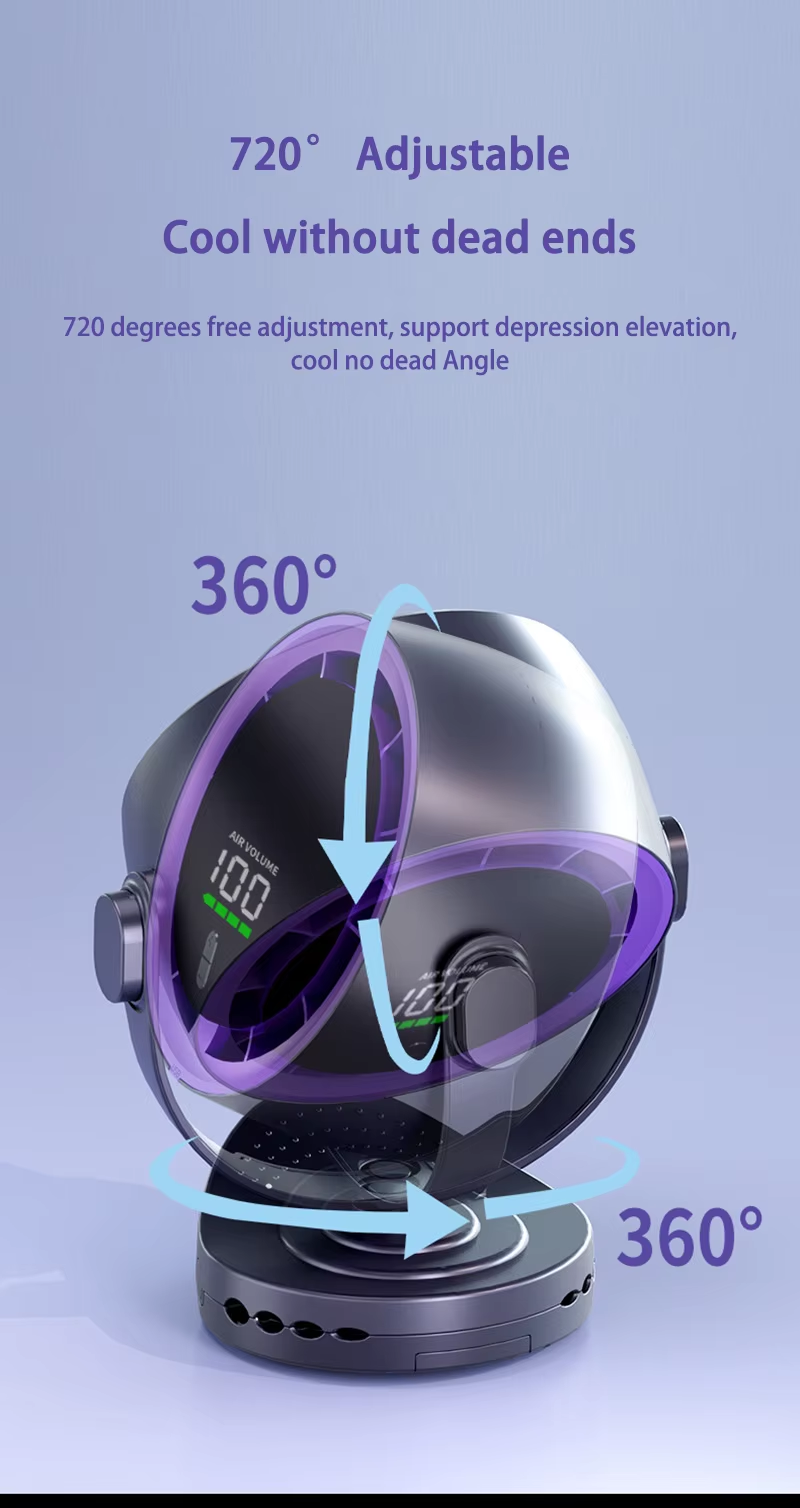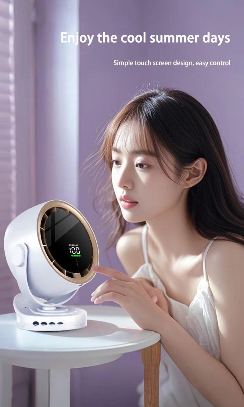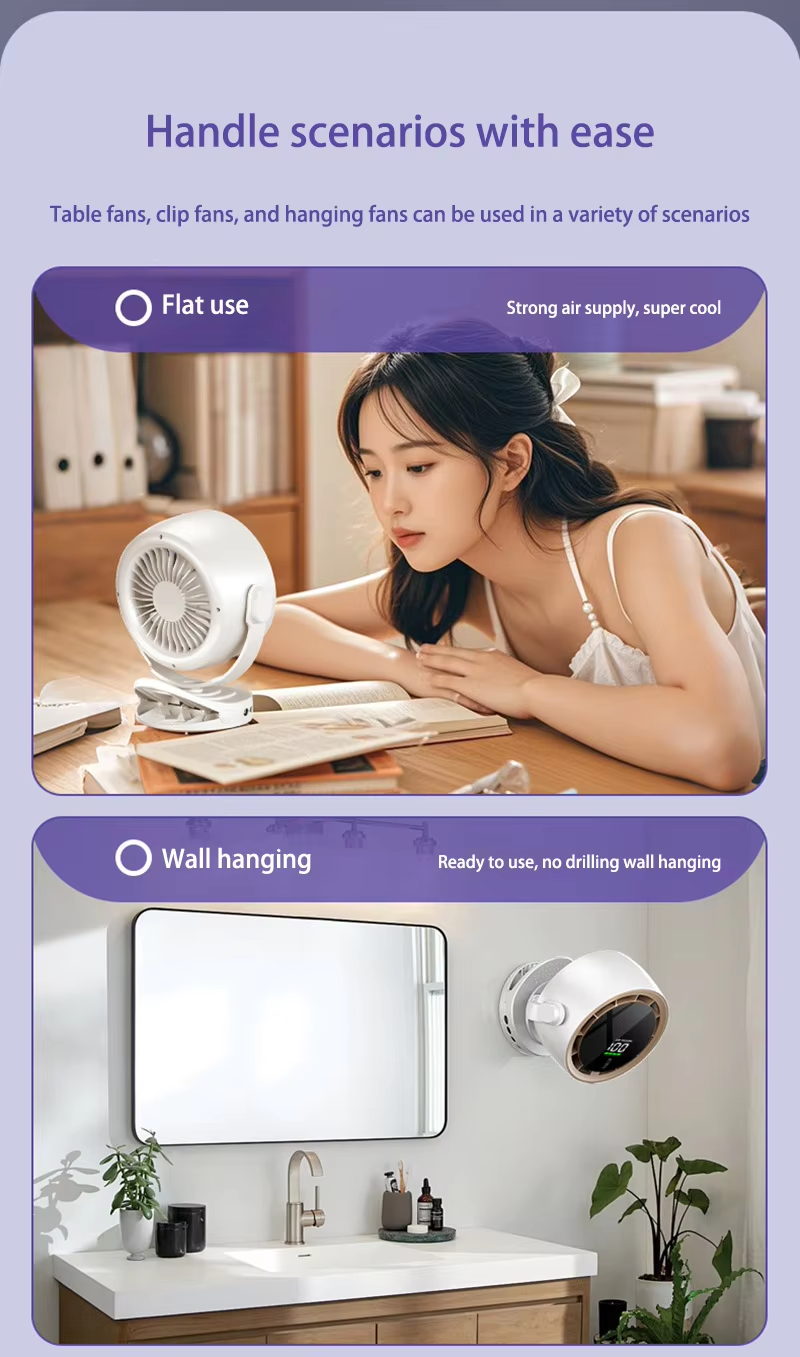 【Compact & Travel-Ready】Its mini size fits neatly on desks or nightstands. Toss it into your backpack or suitcase for portable cooling anywhere. The ultimate portable fan for home, office, or trips.