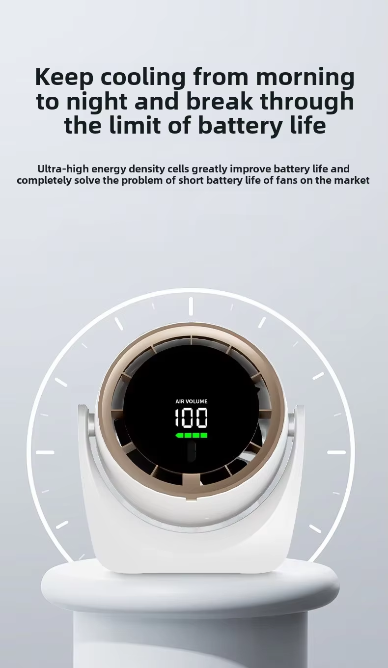 【Smart LED Display】The LED screen of the battery fan clearly shows battery level and speed settings. It auto-dims after 5 seconds to avoid light disturbance, making it perfect for nighttime use.
