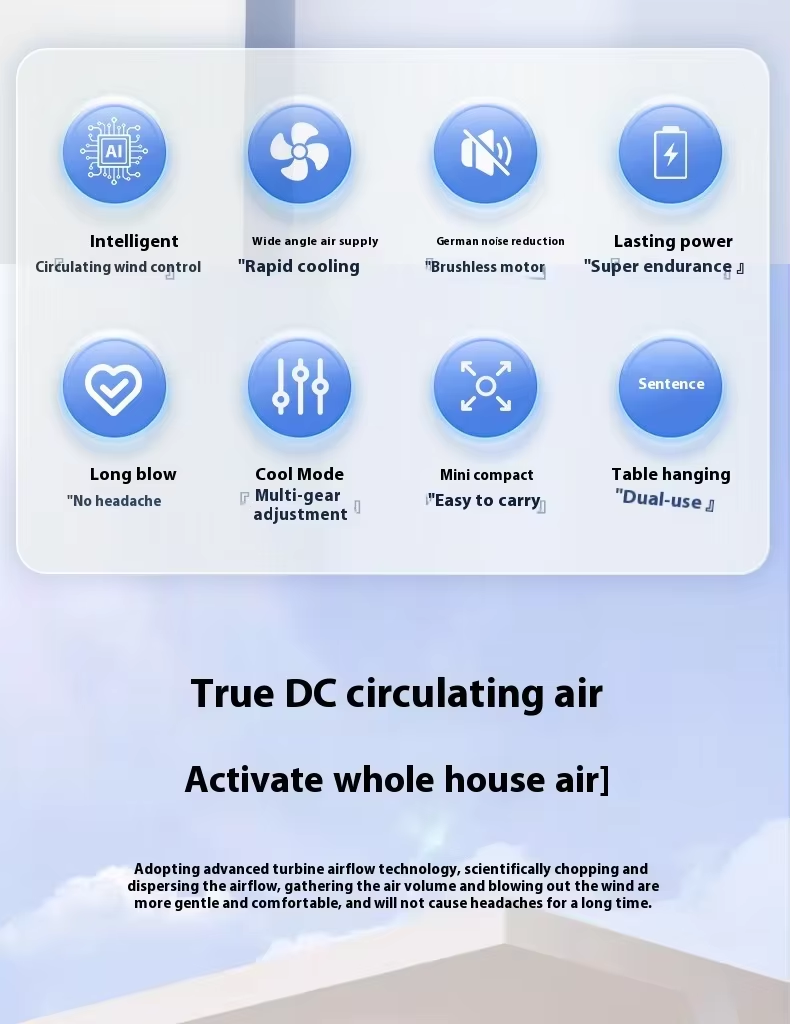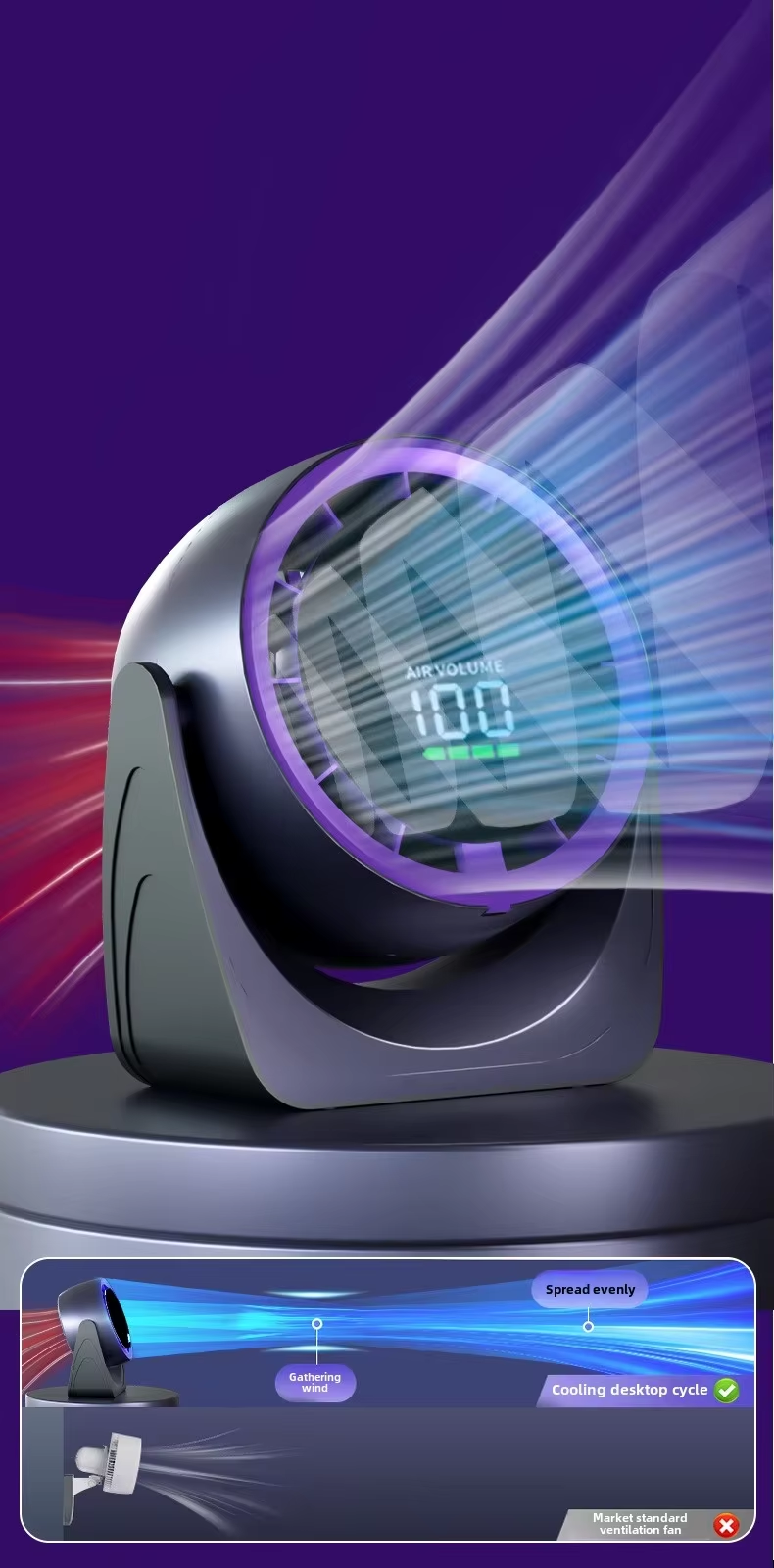 【Compact & Travel-Ready】Its mini size fits neatly on desks or nightstands. Toss it into your backpack or suitcase for portable cooling anywhere. The ultimate portable fan for home, office, or trips.