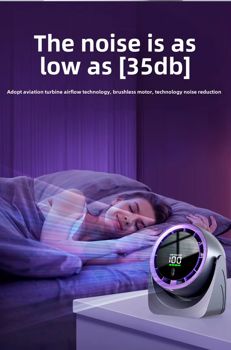 【Comfortable & Quiet Airflow】Our desk fan's brushless motor ensures whisper-quiet operation, ideal fan for offices or sleep. Its turbo design delivers a 360° airflow, max wind speed reaches 17.4ft/s for efficient yet gentle airflow.