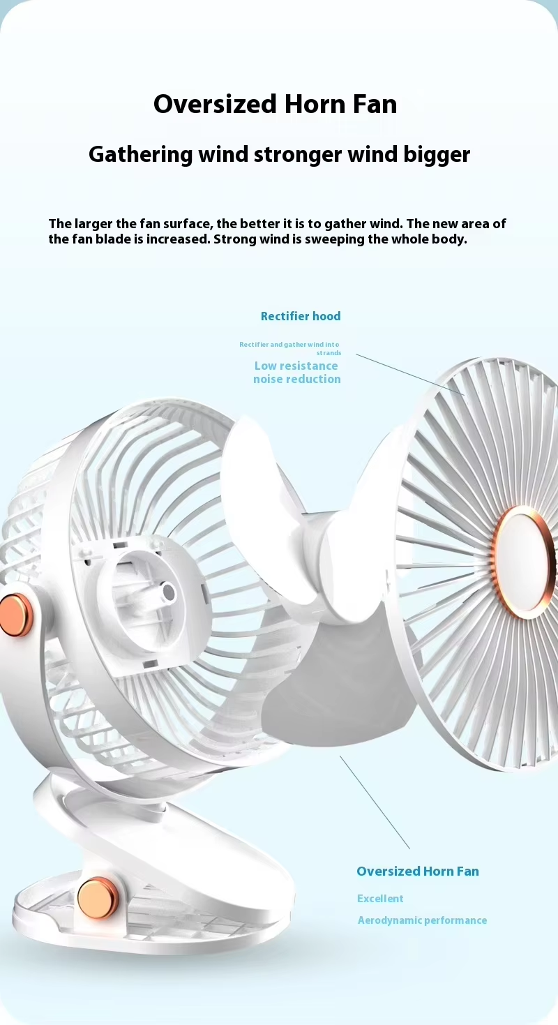 【USB Power Mode】Charge this mini fan with USB and enjoy a 1200mAh large capacity lithium battery that lasts several hours. This clip fan protects battery life and provides continuous and powerful performance.