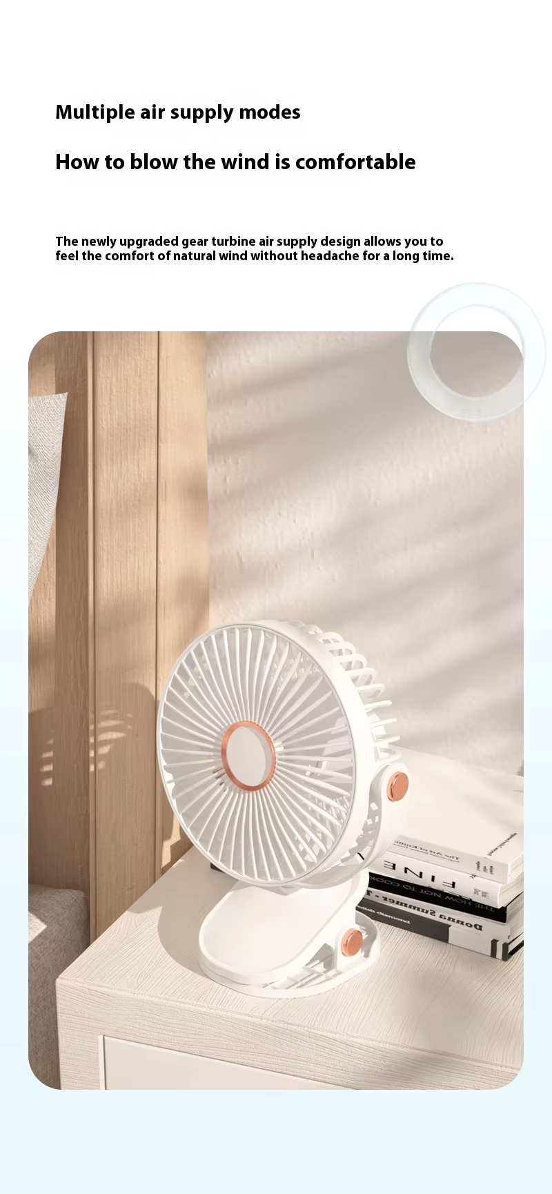 【Ultra Silence】Enjoy a cheerful and relaxed atmosphere without disturbing your family or roommates. You can sleep peacefully with the soft ambient light and noise reduction technology of this small desk fan.