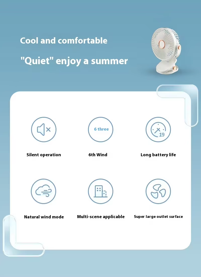 【Stable attachment】This clip fan can be attached to different places such as bed, desk or wall. It has a rubber base that keeps it stable and prevents slipping. You can also tilt the fan to different angles and positions to enjoy the perfect airflow.
