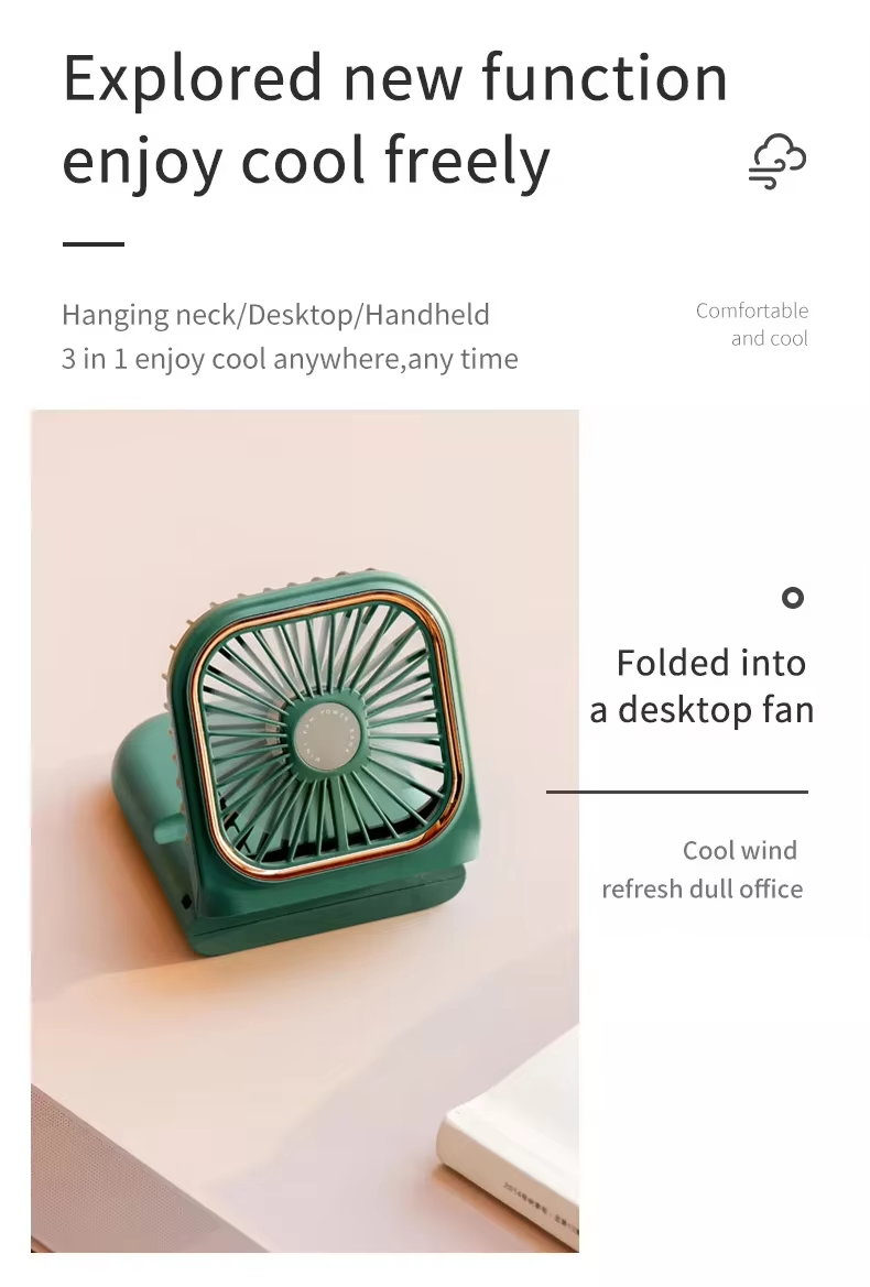 【4 in 1 Design small fan with Power Bank】Handheld fan , Desktop Fan and Neck Fan as a mobile phone holder.FADACHY handheld fan with 3000mAh power bank comes to solve this problem for you. 4 in 1 design brings convenience for girls, boys, sporters, teenagers, office workers, and so on. You can charge your phone, simultaneously enjoy the cooling air. Worthy to own one.