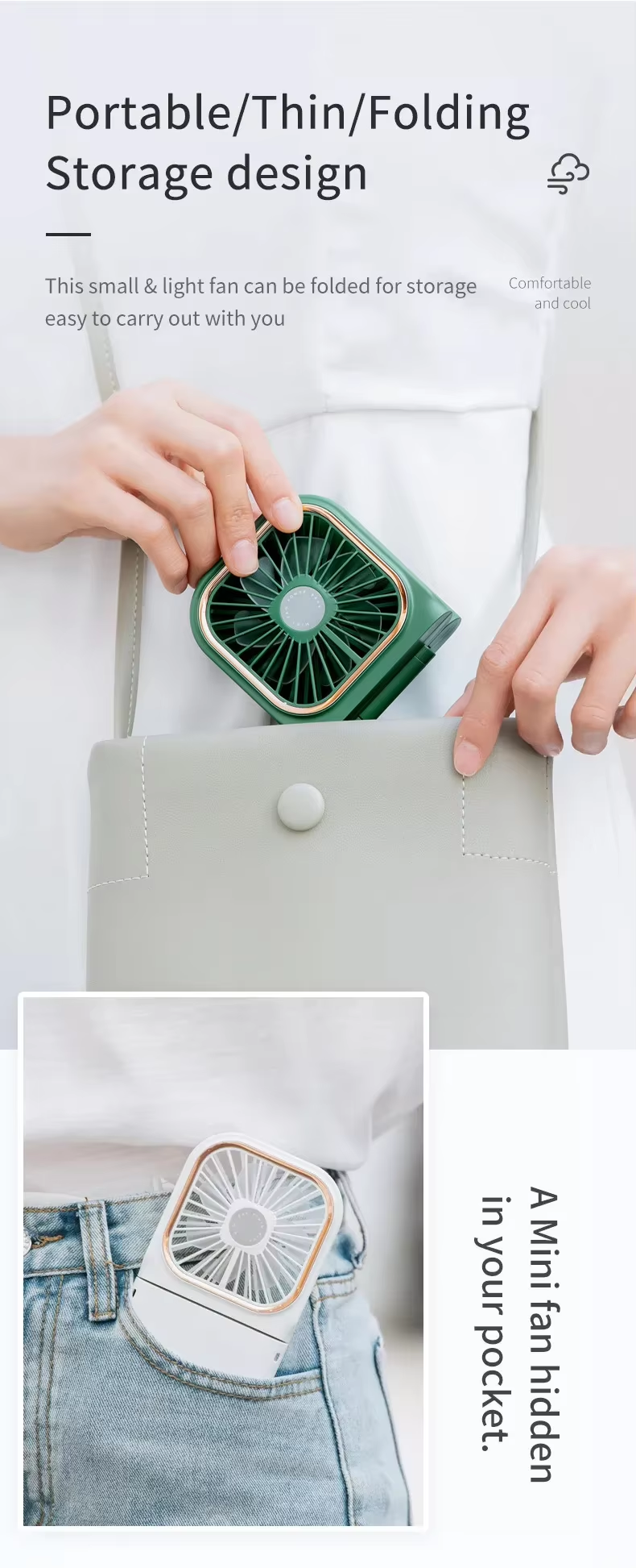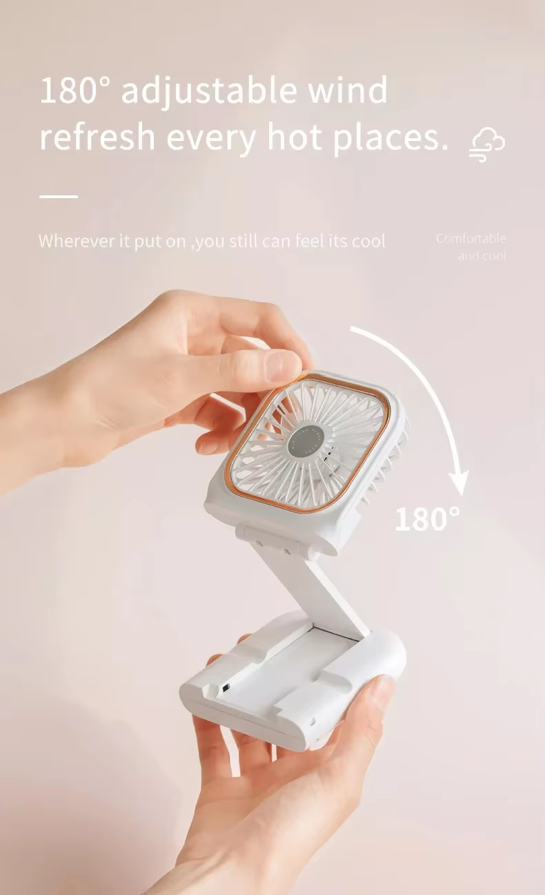 【180° Rotatable Fan and Portable Lightweight Design】The small USB fan supports 180° rotation makes you get airflow from different directions so that keep you cool in any angle. Mini handheld fan is only the size of the palm. Using a portable folding design, it will not take up too much space and weight when putting it in a backpack. Even in your pocket is a breeze.