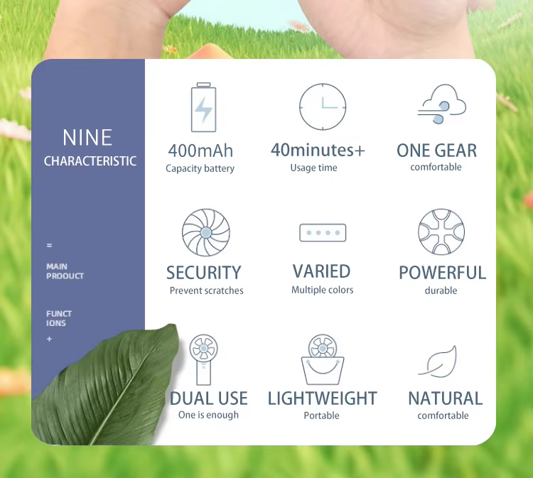 【5 adjustable wind speeds】The Personal fan is silent with 5 spiral fan blades, maximizing airflow intensity to generate strong, high-pressure cool air. The mini handheld fan has 5 adjustable wind speeds; simply press a button to freely switch modes and adjust the wind speed settings. The 5th setting is the strongest, meeting your cooling needs in various situations. You can enjoy a pleasant breeze quietly without any noise pollution.