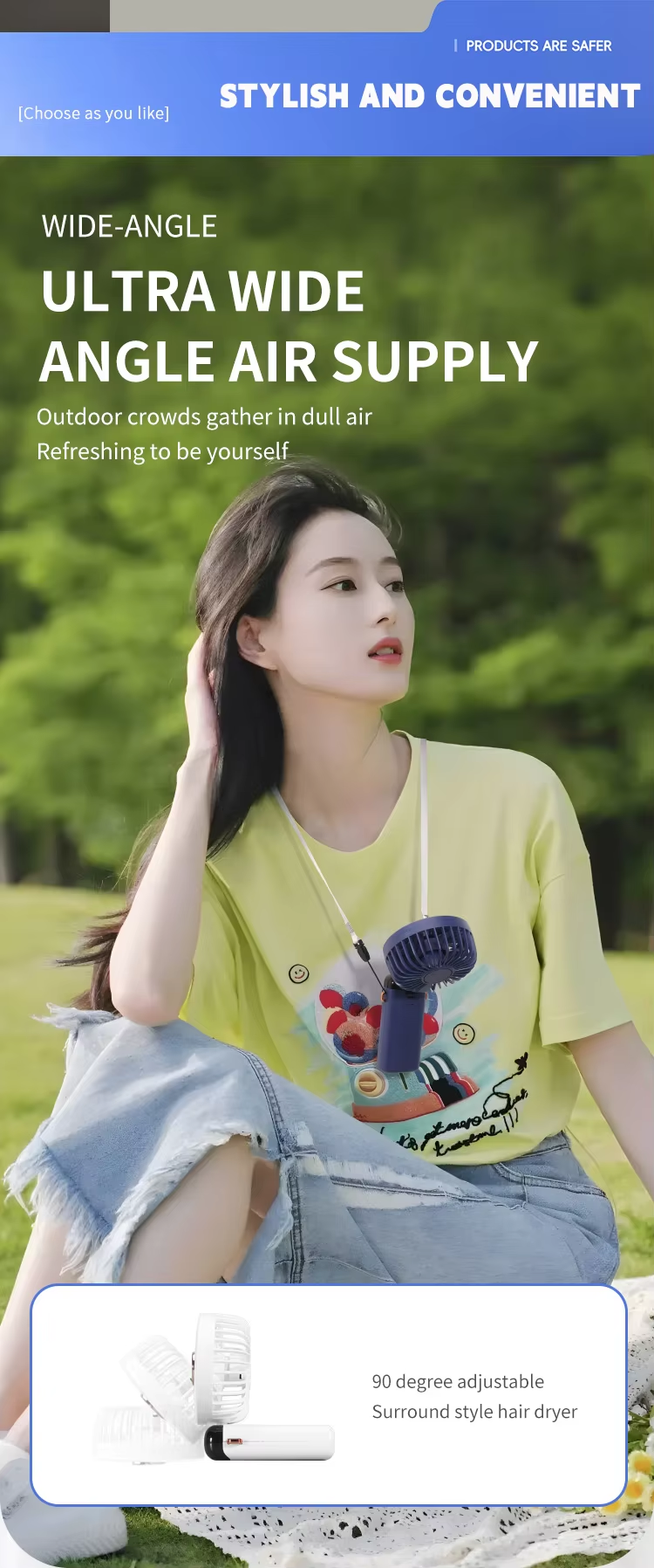 【3-in-1 Multi-Purpose Design】The mini handheld fan is easy to hold; the 90-degree foldable fan can be used as a small table fan; the stand also functions as a phone holder; the neck fan comes with an adjustable strap, freeing your hands. Enjoy refreshing breezes anytime, anywhere, even on hot summer days, making you feel cool and comfortable.