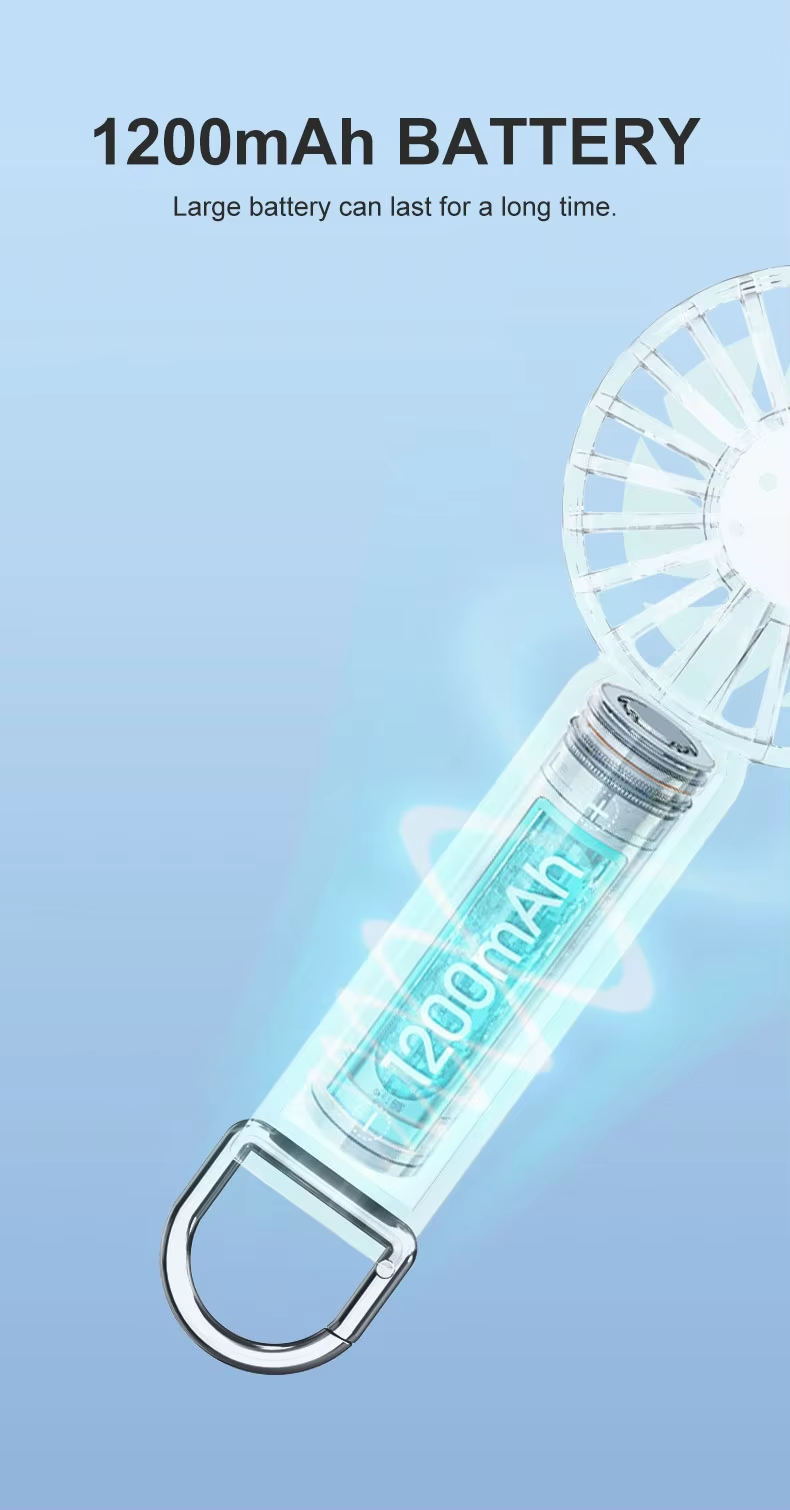 【USB Rechargable】 Say goodbye to disposable batteries! This portable fan rechargeable travel fan comes equipped with a rechargeable battery.The personal fan is powered by an upgraded rechargeable 1200mAh battery which can last 2-6 hours, A full charge takes 3 hours. Comes with a charging cable, you can charge it from a regular outlet, computer, or any other device via a USB port.