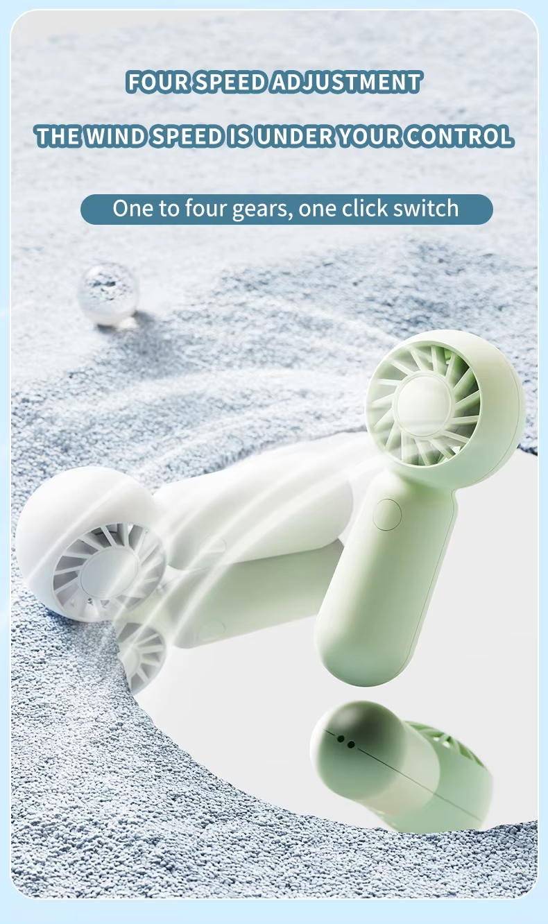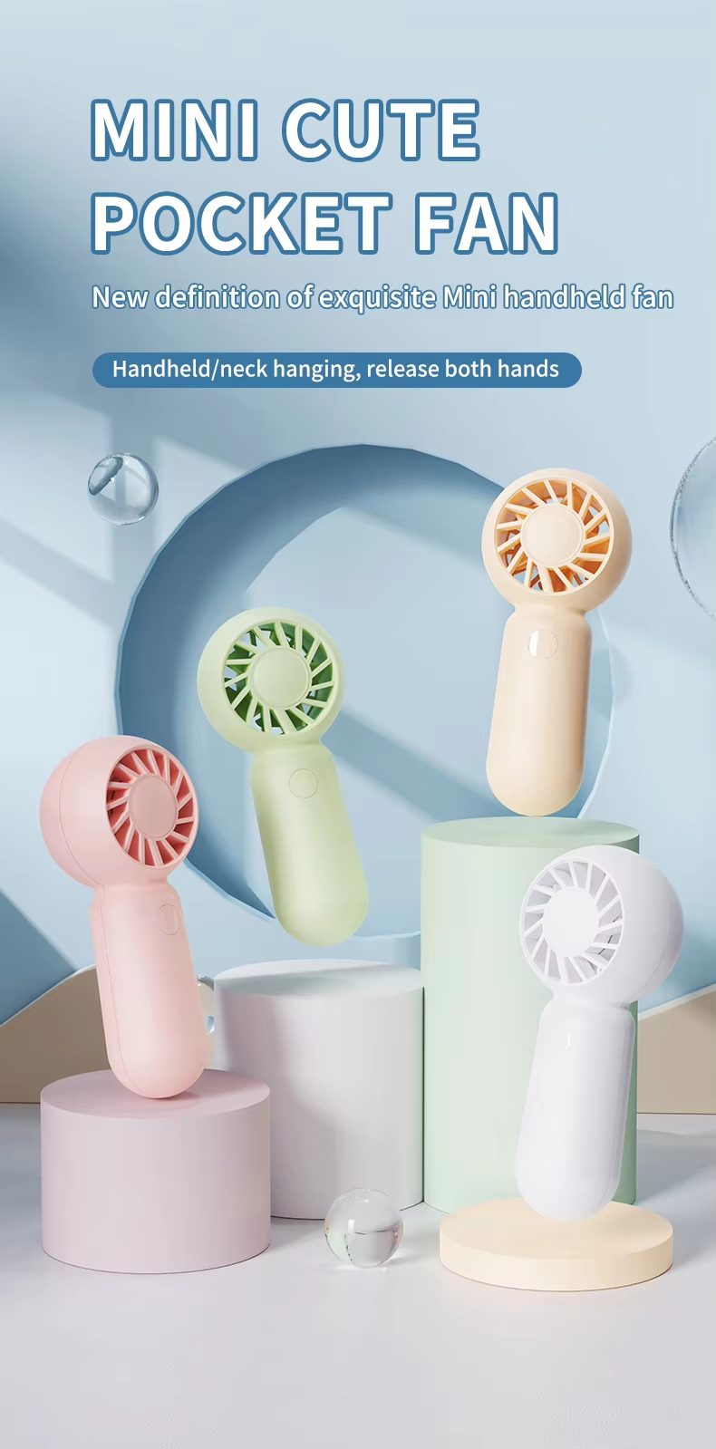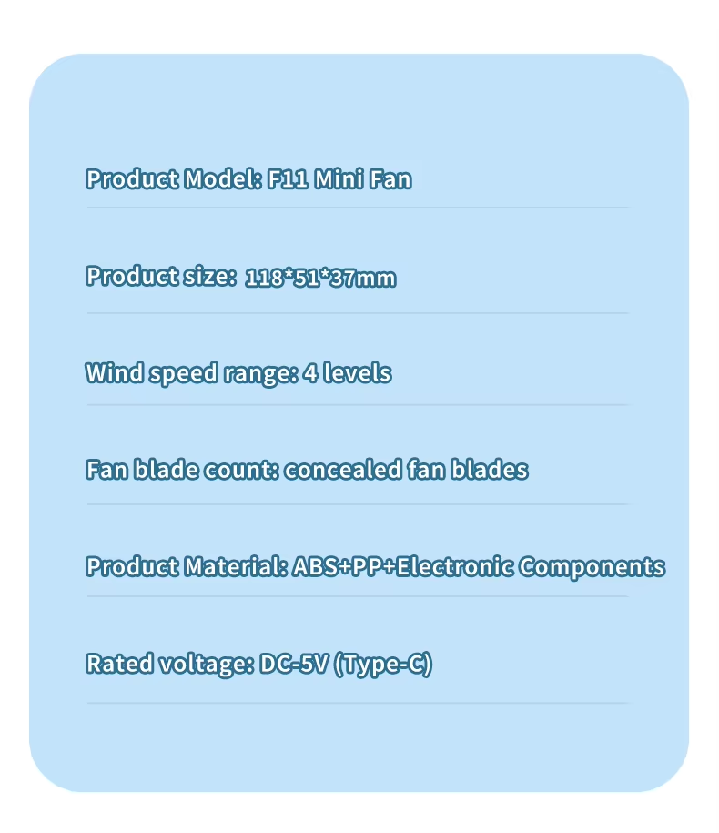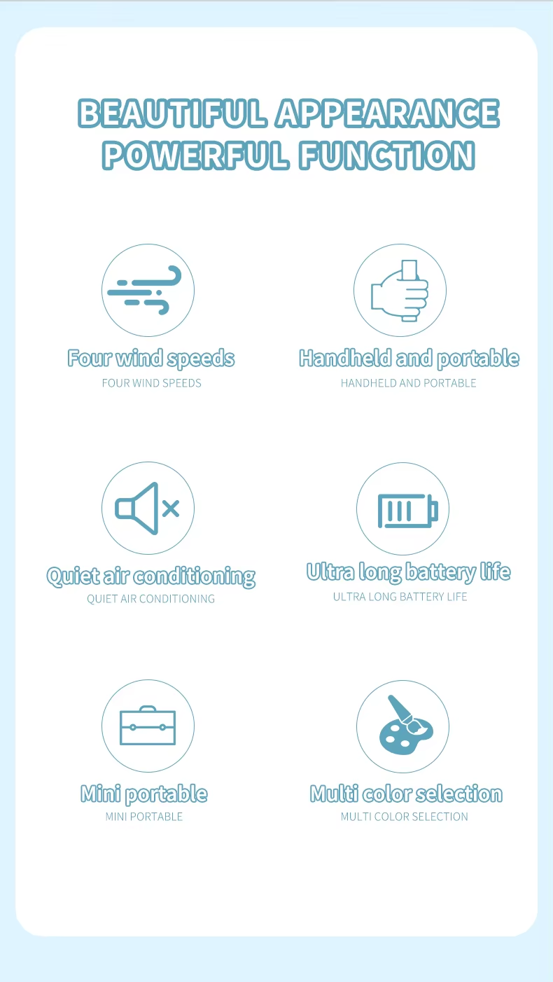 【Small size】: This cute little fan is only 12*5.3*3.9CM/4.72*2.09*1.54 inch, 118 g/0.18 lb, you can put it in your pocket or bag and hang it around your backpack.