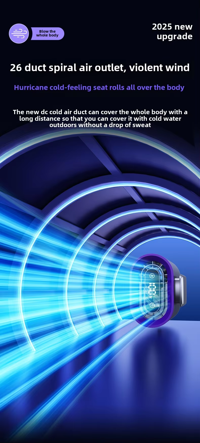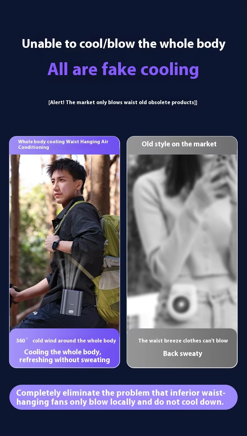 【Advanced Cooling Technology】This waist hanging fan is designed with innovative cooling technology that actively absorbs hot air and releases cool air.