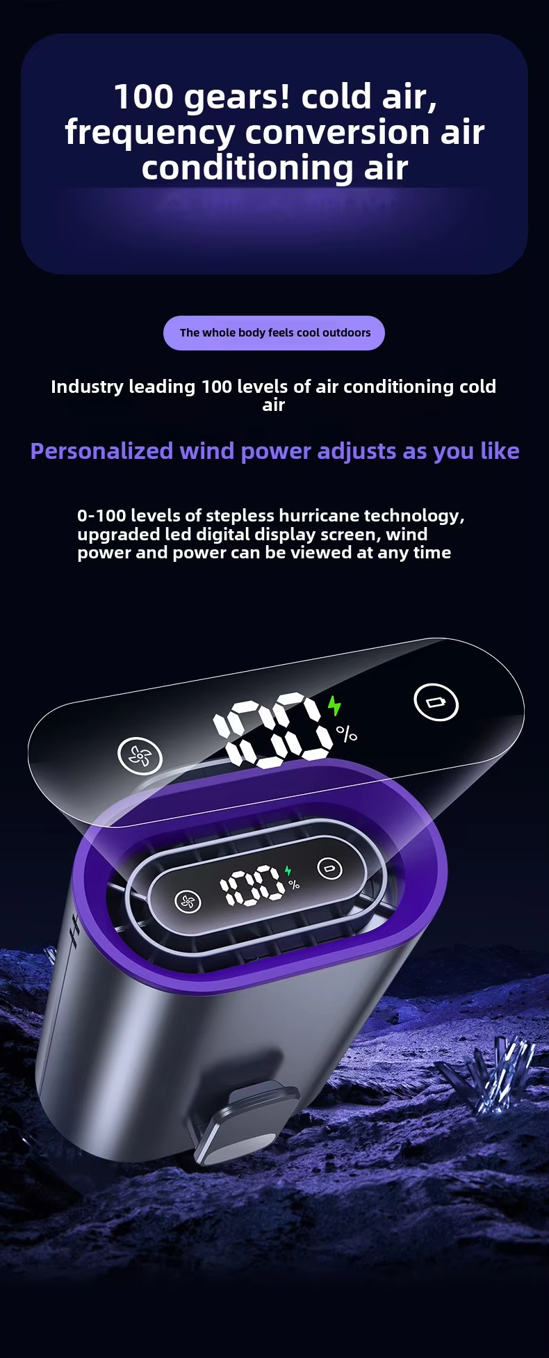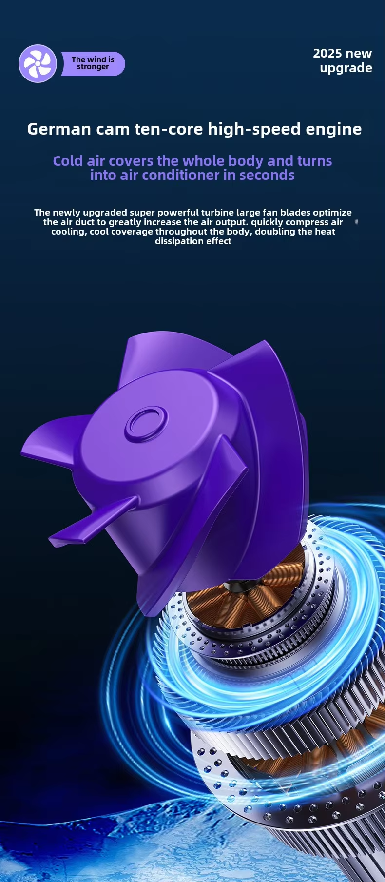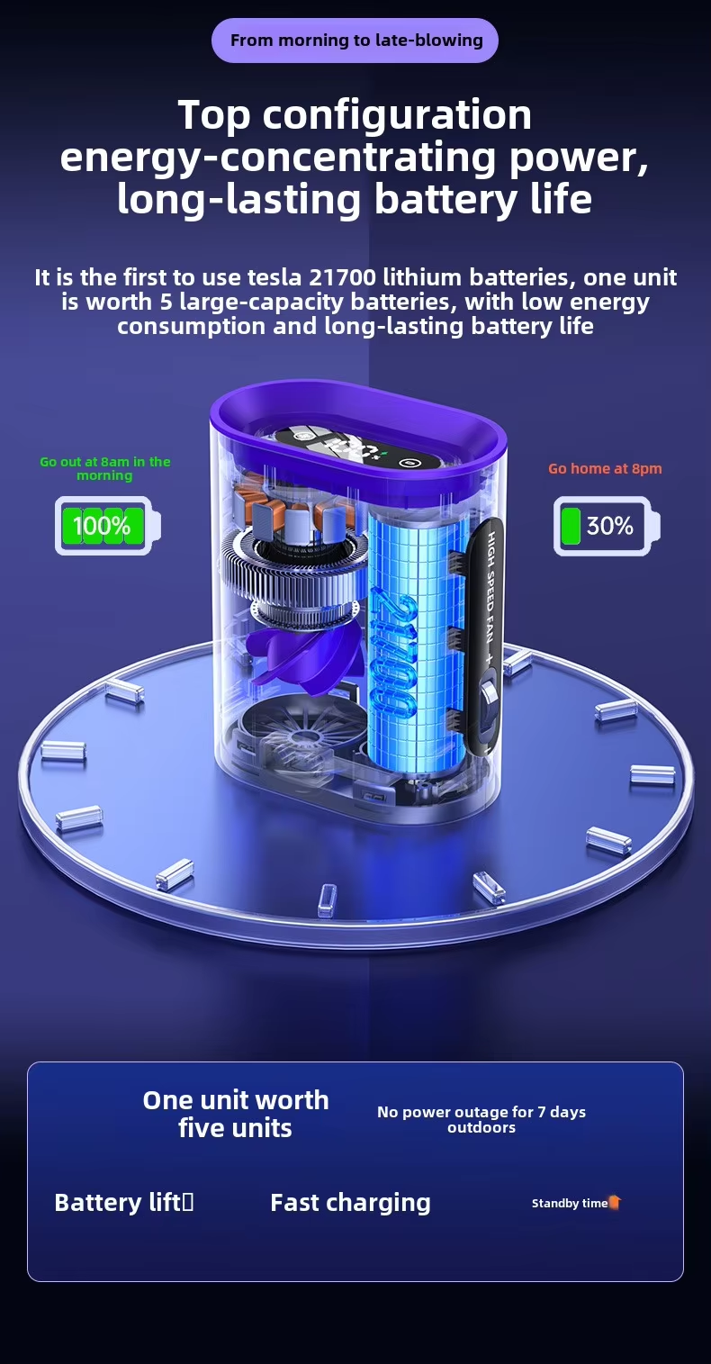 【Powerful Performance】Equipped with a new upgraded engine and large fan blade, this Cooling Fan significantly enhances air output and rapidly compresses air for efficient cooling.