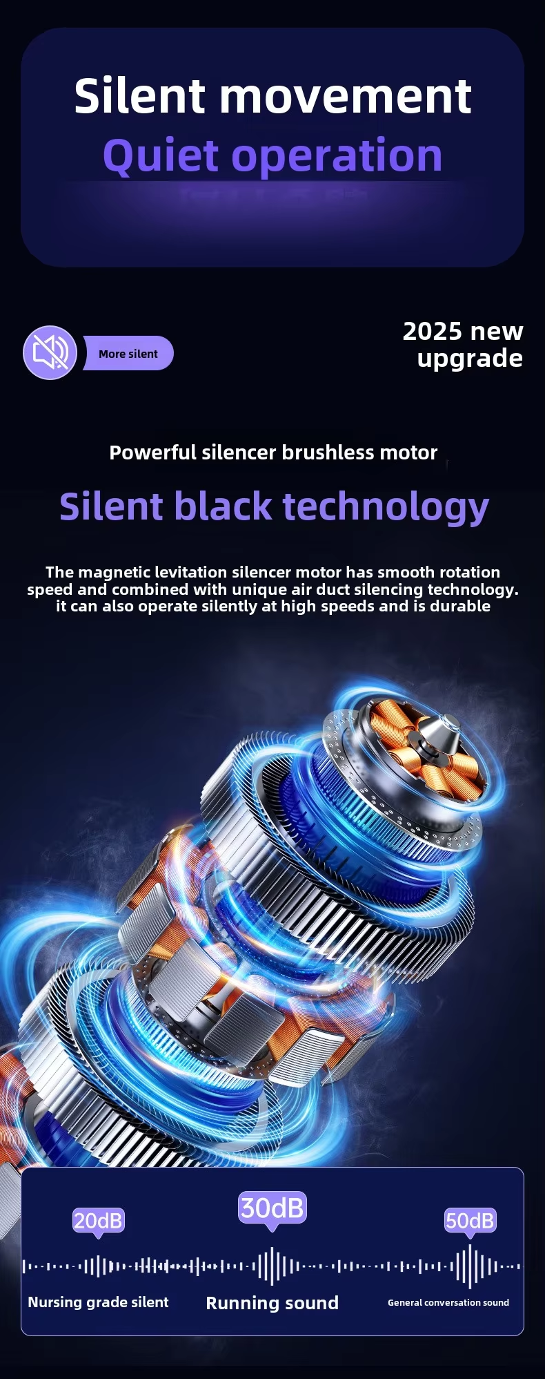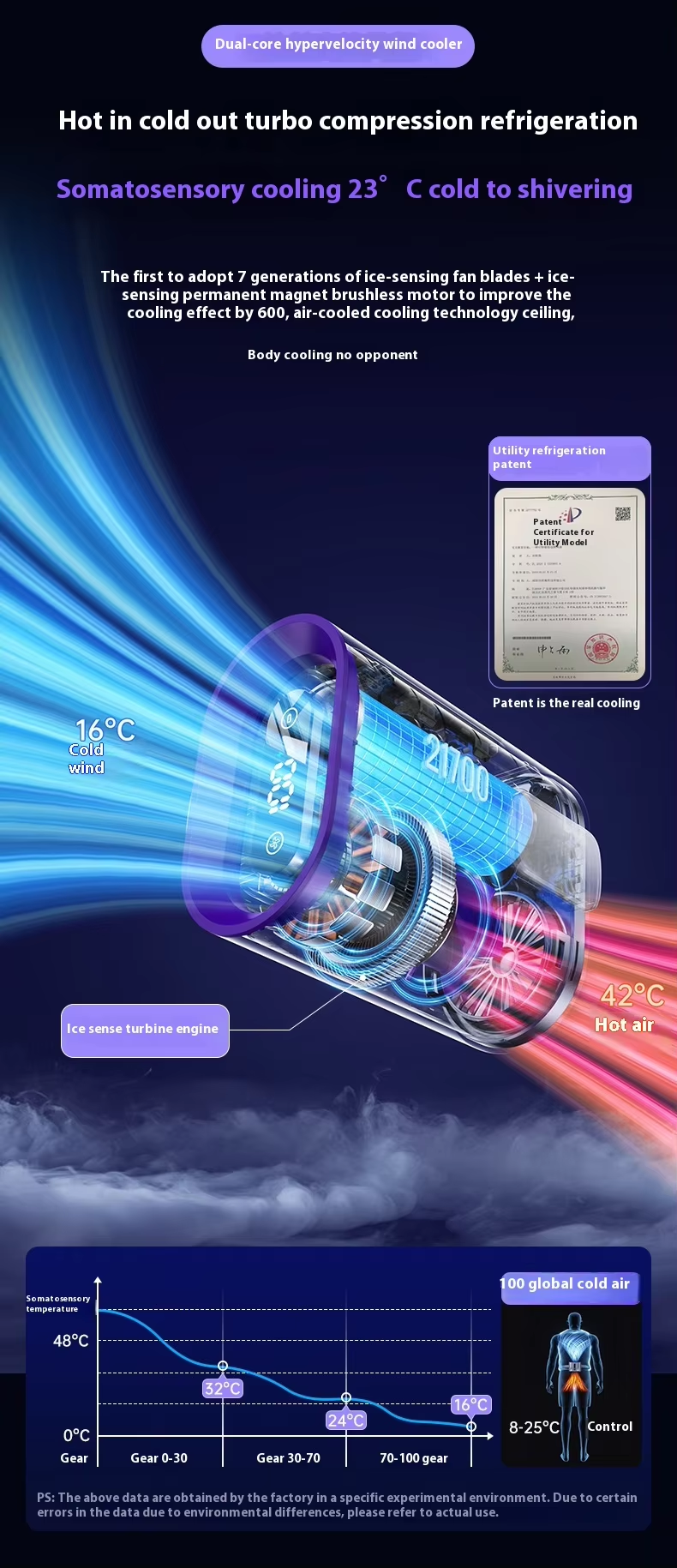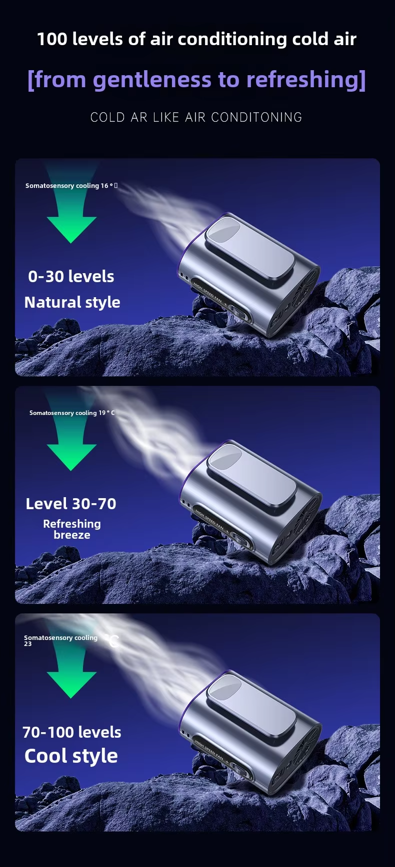 【Powerful Performance】Equipped with a new upgraded engine and large fan blade, this Cooling Fan significantly enhances air output and rapidly compresses air for efficient cooling.