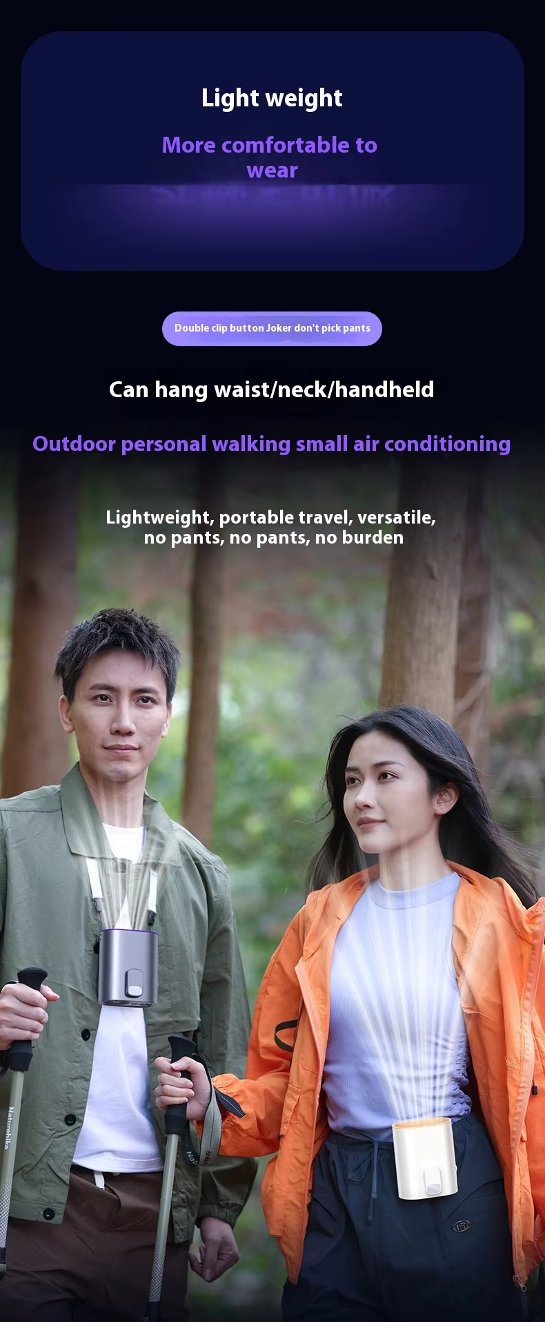 【Quality Material】This Personal Waist Fan is made from ABS+PET materials to withstand daily wear and tear while providing consistent cool comfort.