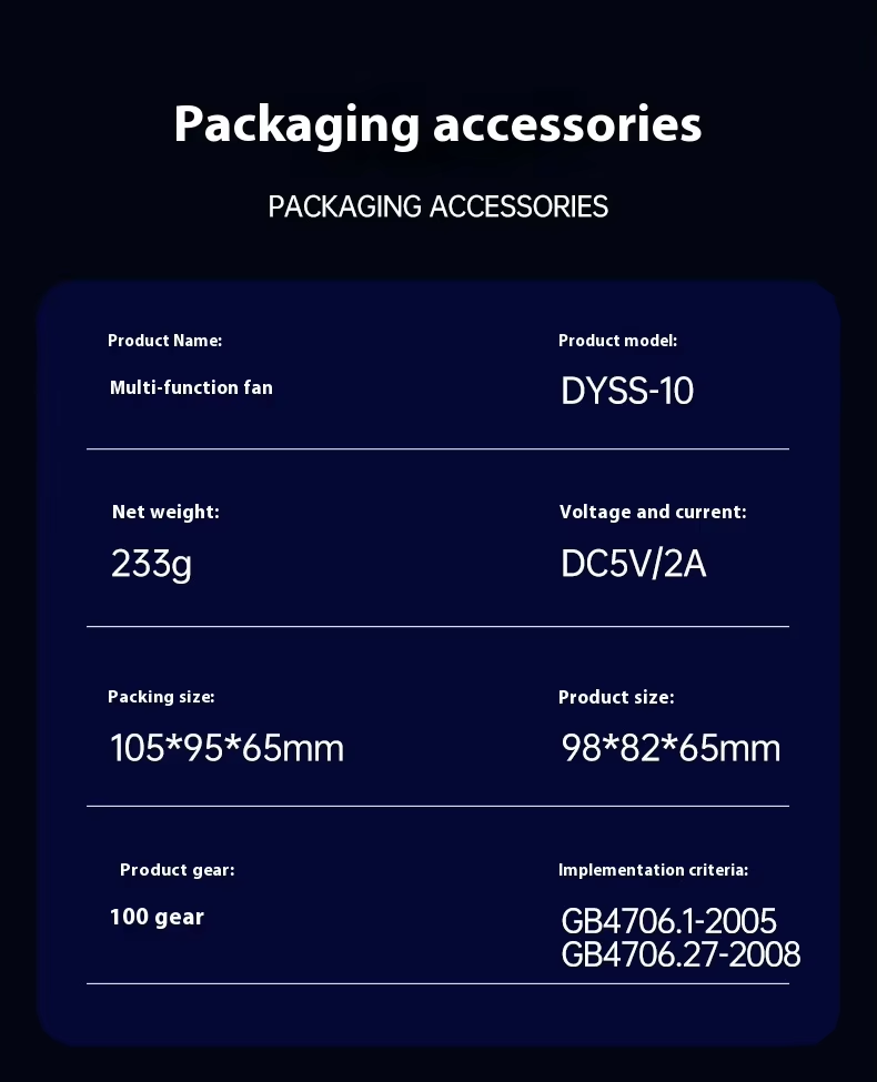 Packing list: fan, manual, Charging cable.